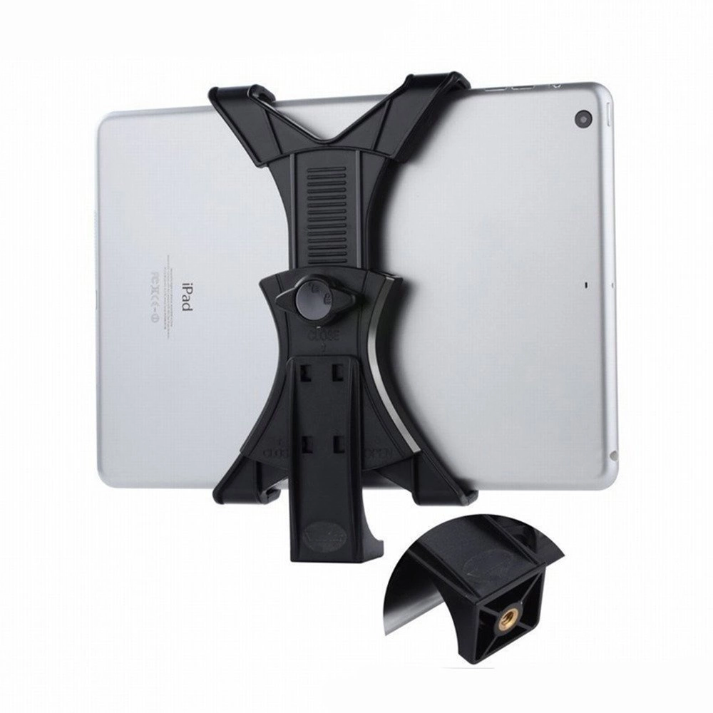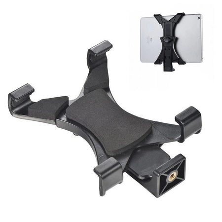 - Strado universal tablet mount with 1/4" thread designed for mounting on tripods and tripods. Made of durable materials, it fits most iPad Samsung Galaxy Tab tablets and other devices with widths ranging from 7 to 25 cm. Id