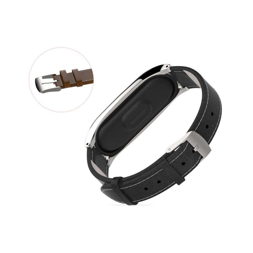 - Strado strap made of black eco leather fits Xiaomi Mi Band 3 and 4. Stylish alternative to silicone straps - ideal for work meetings and everyday use. Adjustable length solid clasp and precision cutouts for stable attachment