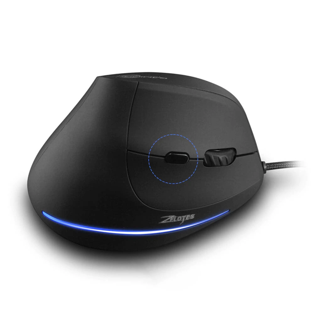 ZELOTES T20 mouse has a special button on the base to adjust the sensitivity of the mouse.Sensitivity, by clicking, can be changed between 1200-3200 DPI. This solution is helpful when performing activities that require high precision.