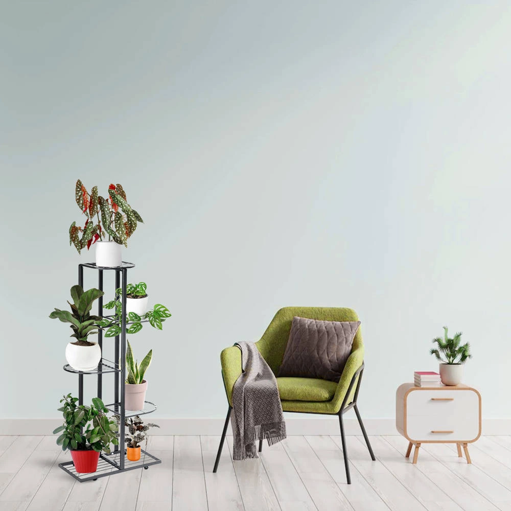 - Black metal flowerbed, accommodating 6 pots. Sturdy construction ensures stability, and elegant design highlights the beauty of plants, fitting perfectly in the living room, office or terrace.