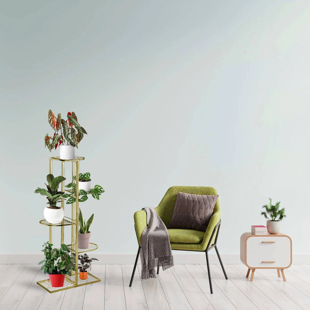 - Gold metal flowerbed, accommodating 6 flower pots. Sturdy construction ensures stability, and elegant design highlights the beauty of plants, fitting perfectly in the living room, office or terrace.