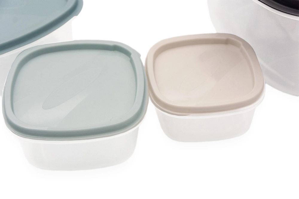 A set of six transparent containers with colorful lids is a practical and functional solution for storing a variety of foods. They are ideal both in the kitchen and as lunchboxes for work or school. With food contact approval, we are assured that it is safe to use these containers.