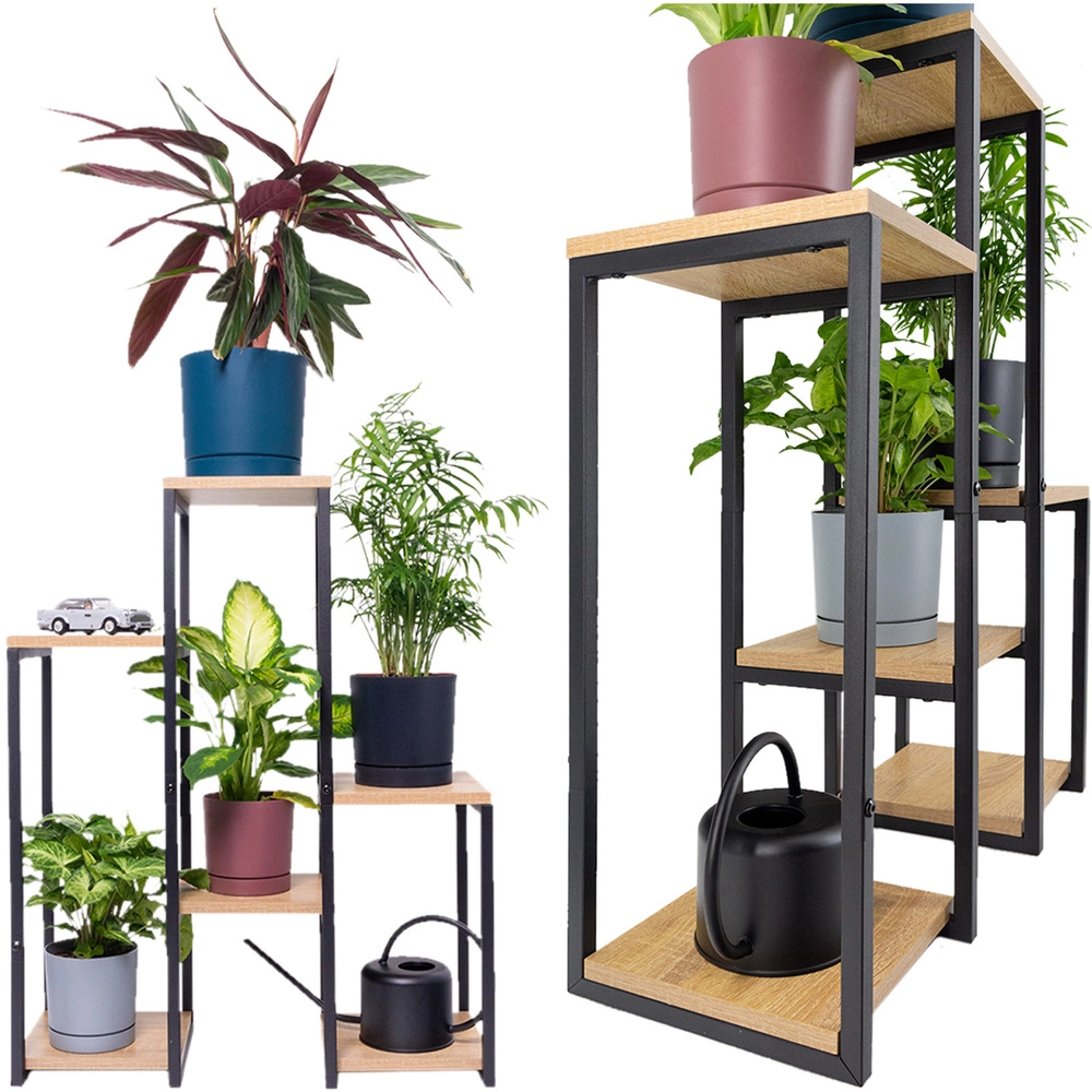 PANORAMA 6 level metal standing flower stand - elegant flower and plant stand OAK