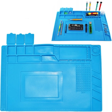 - Durable silicone service pad resistant to 500°C with organizer for screws and tools non-slip surface ideal for soldering repairs and electronic work allows convenient organization of the work station
