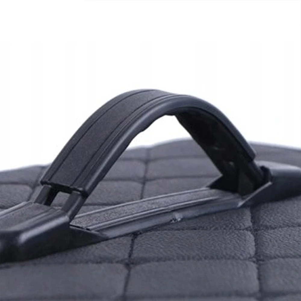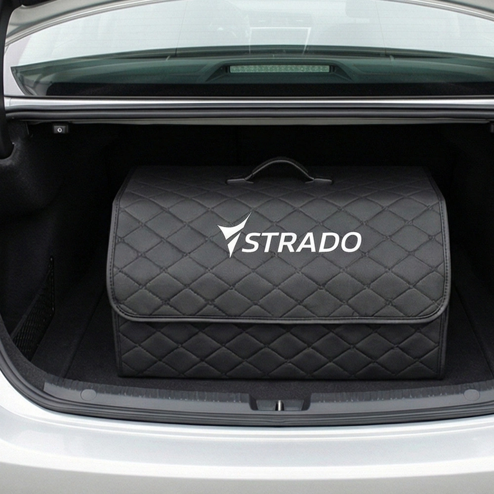 - Capacious folding car trunk organizer with elegant quilted trim. Ideal for shopping tools and accessories. Reinforced walls and handles for durability. Easy to carry and fold keeps your car tidy.