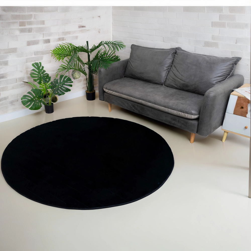 STRADO round Rabbit 3D plush soft like rabbit anti-slip carpet 200 Black