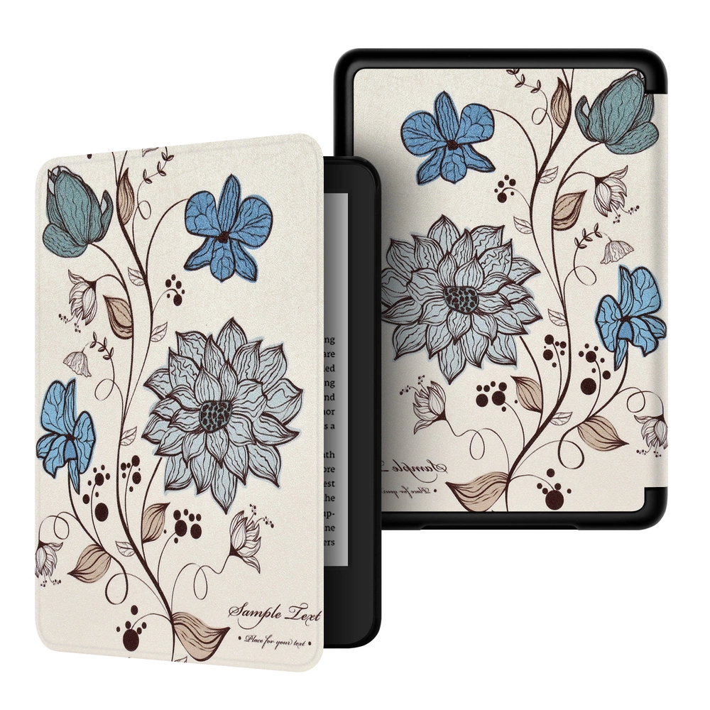 - Floral graphic case for Kindle Paperwhite 6" (12. gene. Signature Edition) with an elegant floral design. It has an auto wake/sleep function, a magnetic clasp and a soft microfiber interior. Protects the reader and adds style to any use.