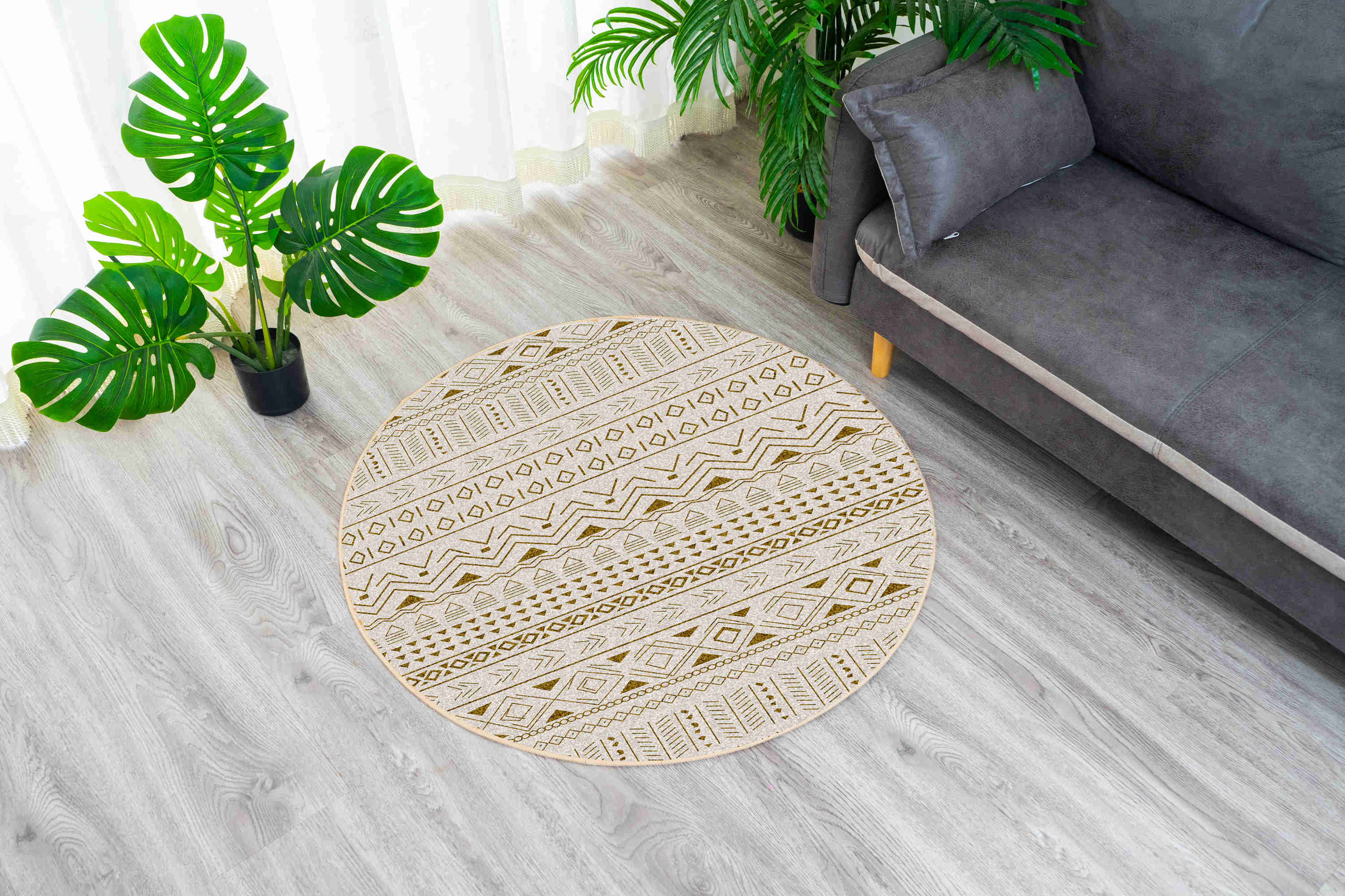 Round carpet NOVO Strado modern beige oriental pattern for living room Sahara 160x160 cm