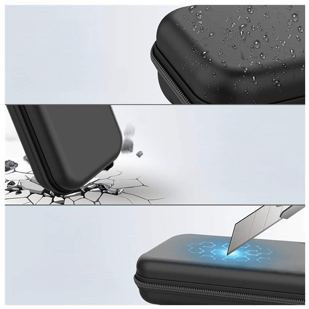 - Materiał EVA użyty do produkcji etui jest odporny na zachlapania i wilgoć, co zapewnia dodatkową ochronę podczas podróży lub użytkowania w trudniejszych warunkach.