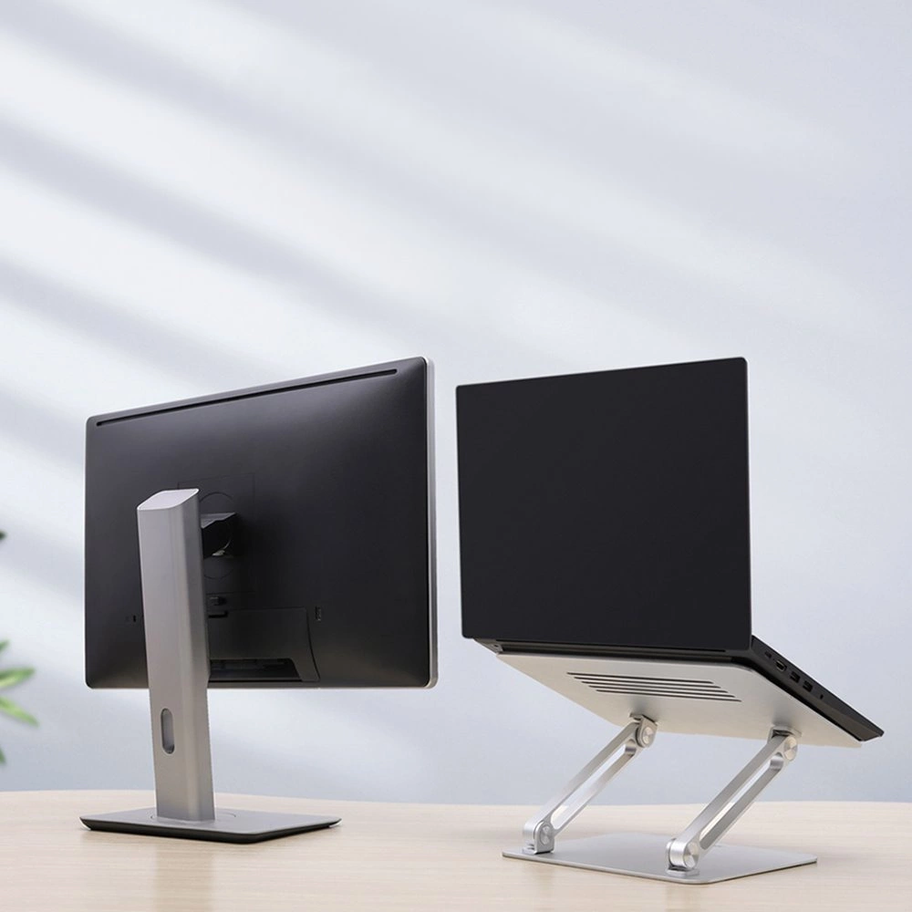 - Wytrzymały stojak pod laptopa wykonany z anodowanego aluminium regulacja wysokości i kąta nachylenia zapewniają ergonomię pracy antypoślizgowe nóżki i silikonowe stopery stabilizują urządzenie nośność do 10 kg lekka składana konstrukcja ułatwia transport