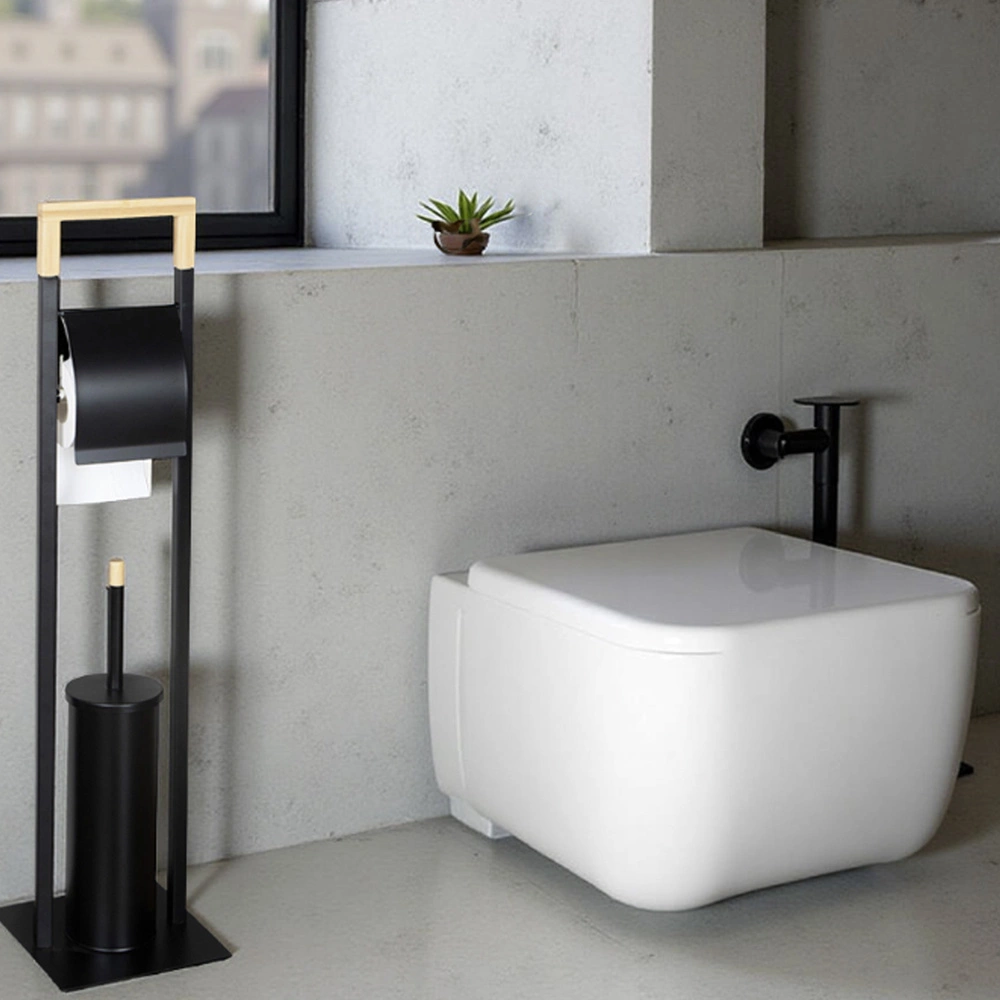 - Funkcjonalny stojak 2w1 z uchwytem na papier toaletowy i szczotką WC. Wolnostojąca konstrukcja z trwałego metalu, odporna na wilgoć. Idealny do nowoczesnych łazienek – oszczędza miejsce i zapewnia porządek.