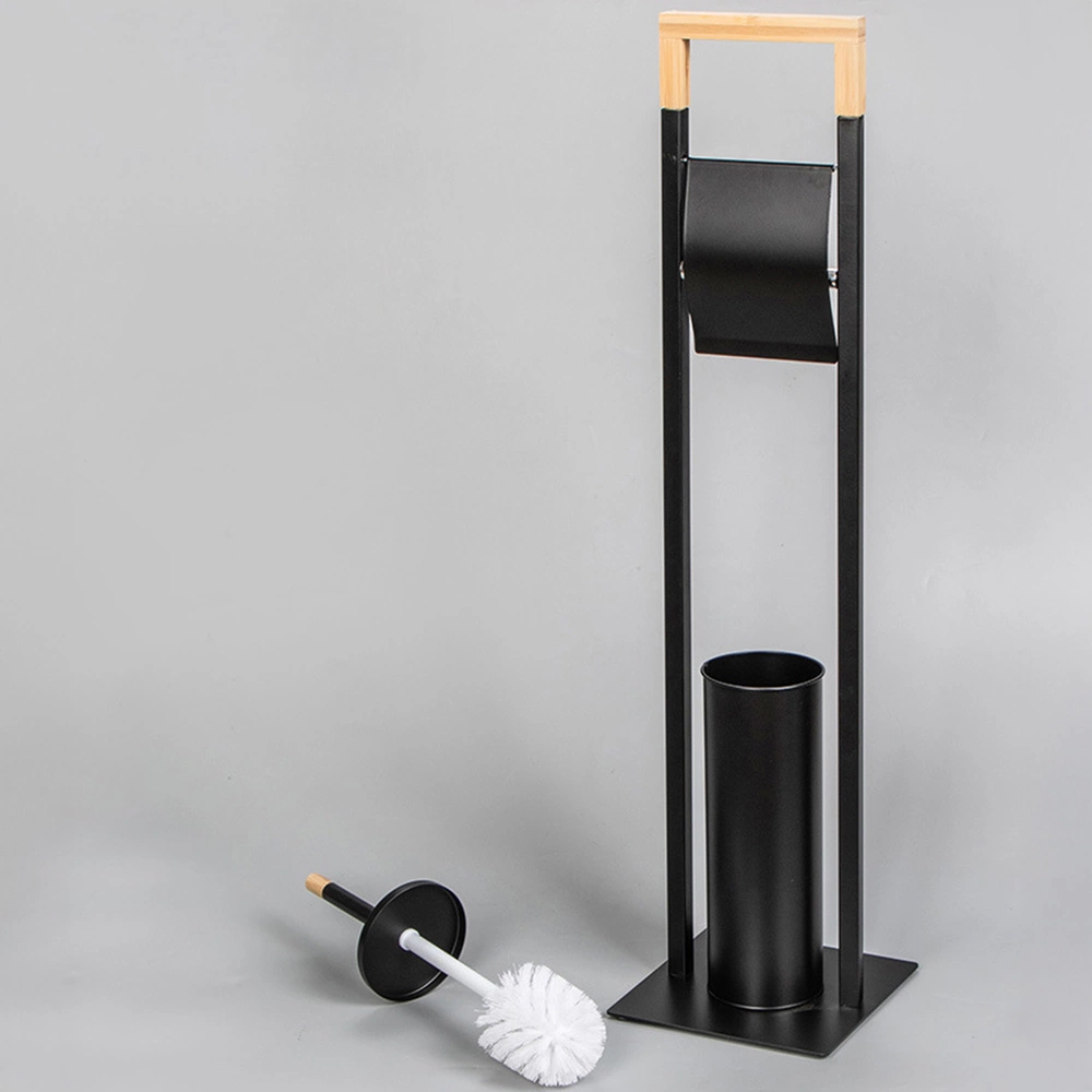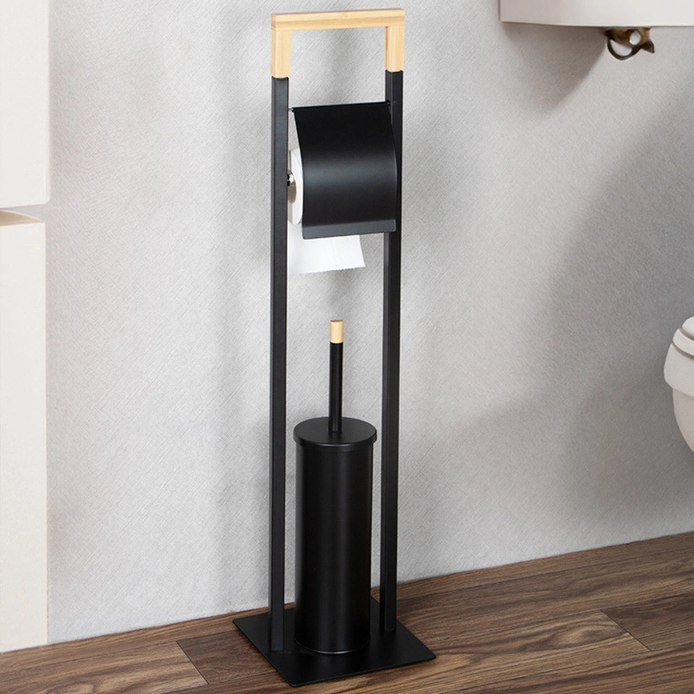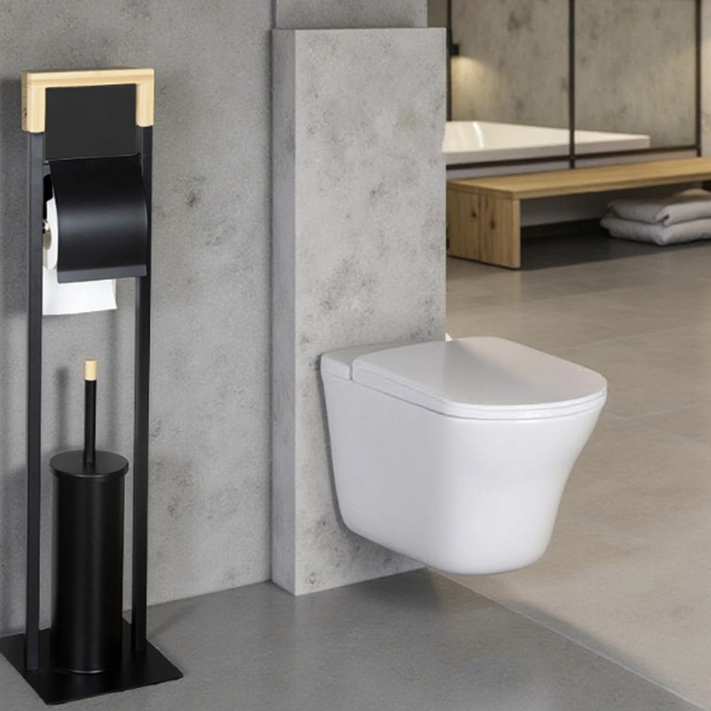 Stojak na papier toaletowy z uchwytem na szczotkę WC – metal i bambus