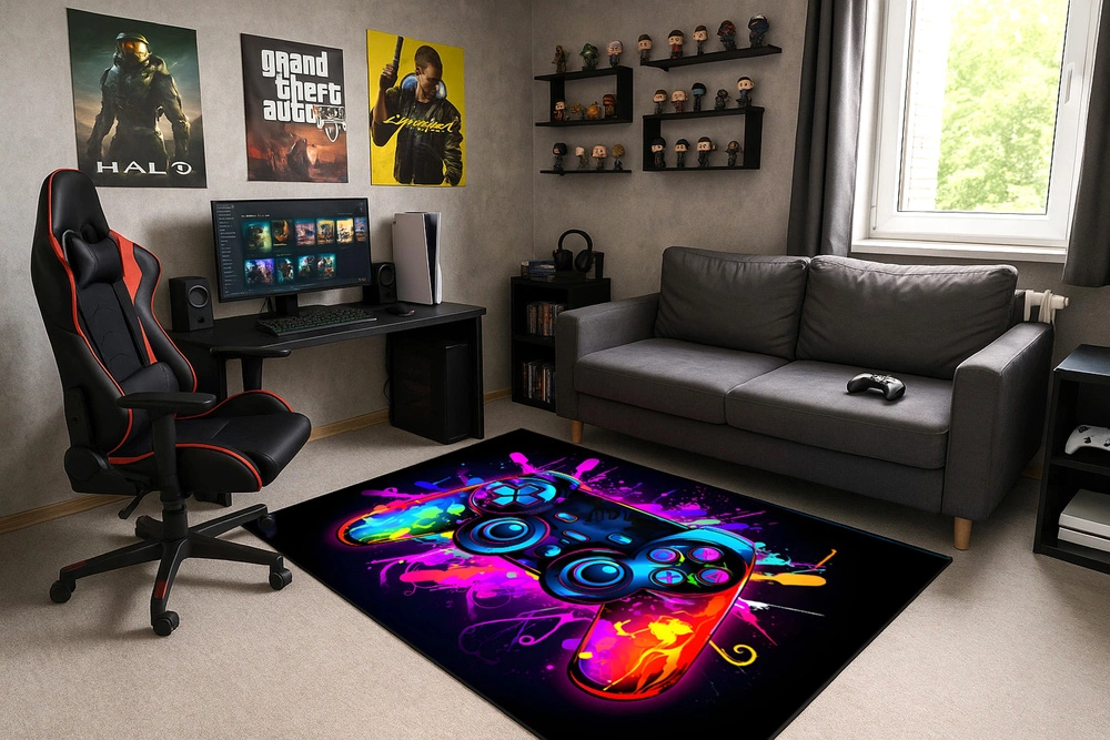 - Styl i wyrazistość: Dywan 3D Gamingowy to nie tylko element dekoracyjny – to mocny akcent, który definiuje przestrzeń. Nowoczesne, dynamiczne wzory z motywami gier wideo dodają wnętrzu charakteru i pozwalają wyrazić pasję do gamingu. Idealnie łączy się z innymi elementami pokoju gracza, tworząc spójną i stylową aranżację.