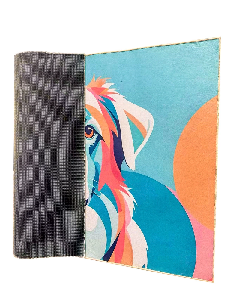 Kolorowy dywan z psem — radość i komfort na co dzień