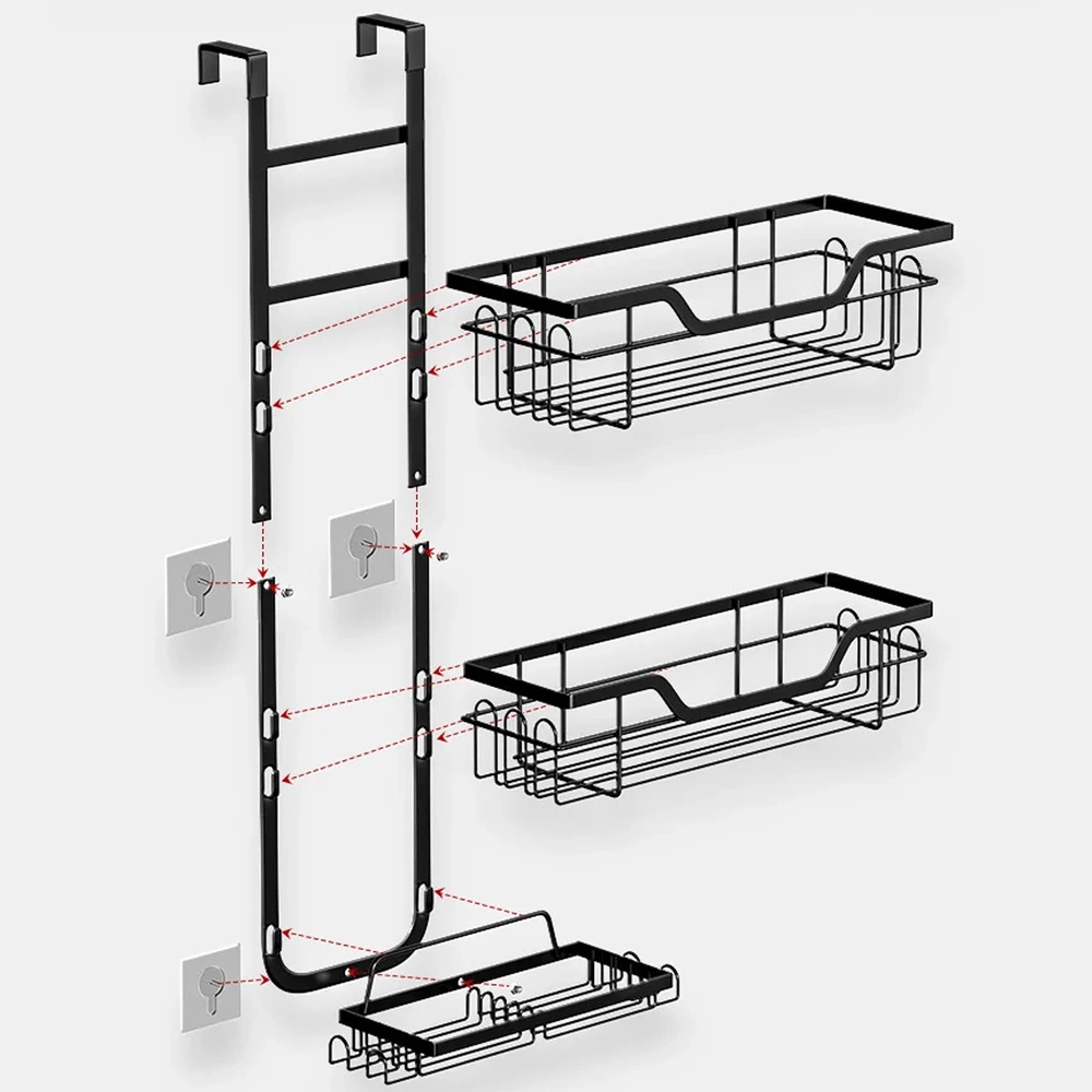 - Solidna konstrukcja – podwójne półki plus uchwyty na akcesoria (gąbki, myjki), wykonane z nierdzewnego metalu zapobiegającego korozji