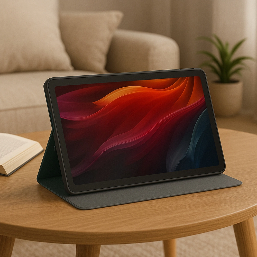 - Funkcja podstawki – możliwość ustawienia tabletu pod kątem 15° lub 60°, idealne do pracy, oglądania filmów czy wideorozmów.
