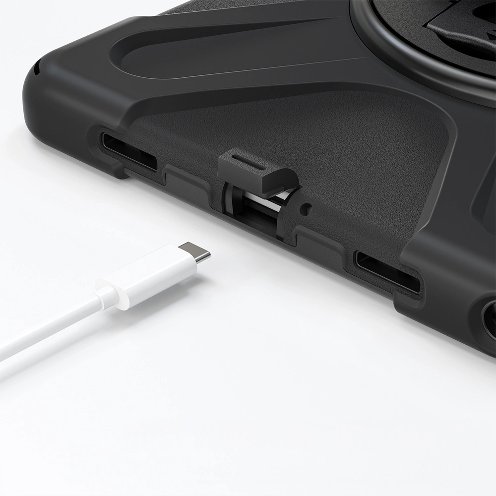 Wytrzymałe etui pancerne Shockproof to niezawodna tarcza dla Twojego tabletu. Dzięki połączeniu materiałów TPU i PC urządzenie jest świetnie zabezpieczone w codziennym użytkowaniu. Konstrukcja zapewnia komfortowy dostęp do wszystkich funkcji, a obrotowa nóżka oraz pasek na dłoń zwiększają wygodę podczas pracy, nauki i rozrywki.