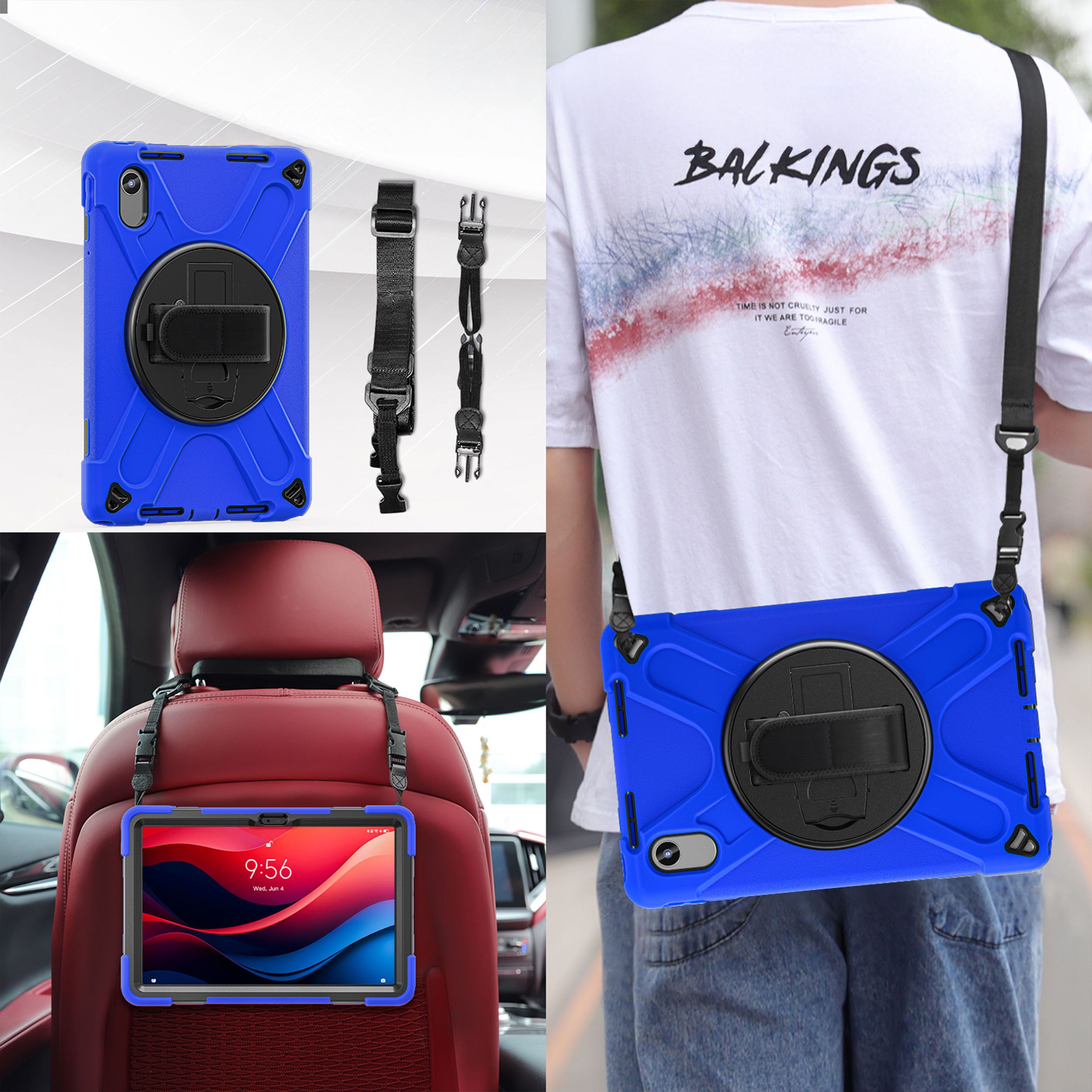 Wytrzymałe etui pancerne Shockproof to niezawodna tarcza dla Twojego tabletu. Dzięki połączeniu materiałów TPU i PC urządzenie jest świetnie zabezpieczone w codziennym użytkowaniu. Konstrukcja zapewnia komfortowy dostęp do wszystkich funkcji, a obrotowa nóżka oraz pasek na dłoń zwiększają wygodę podczas pracy, nauki i rozrywki.