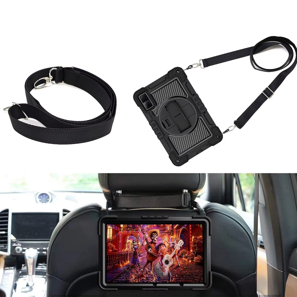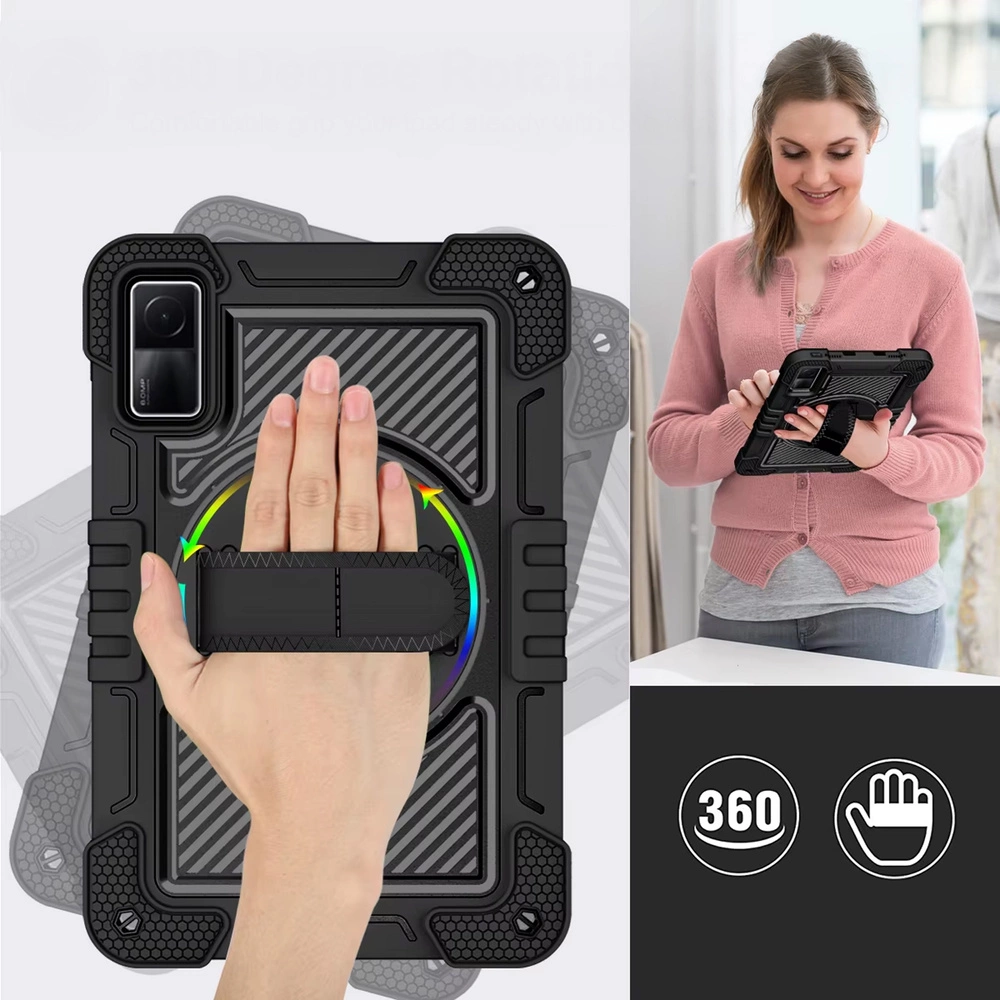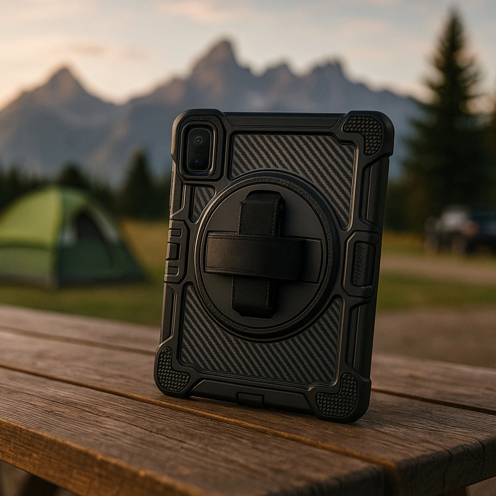 Wytrzymałe etui pancerne Shockproof to niezawodna tarcza dla Twojego tabletu. Dzięki połączeniu materiałów TPU i PC urządzenie jest świetnie zabezpieczone w codziennym użytkowaniu. Konstrukcja zapewnia komfortowy dostęp do wszystkich funkcji, a obrotowa nóżka oraz pasek na dłoń zwiększają wygodę podczas pracy, nauki i rozrywki.
