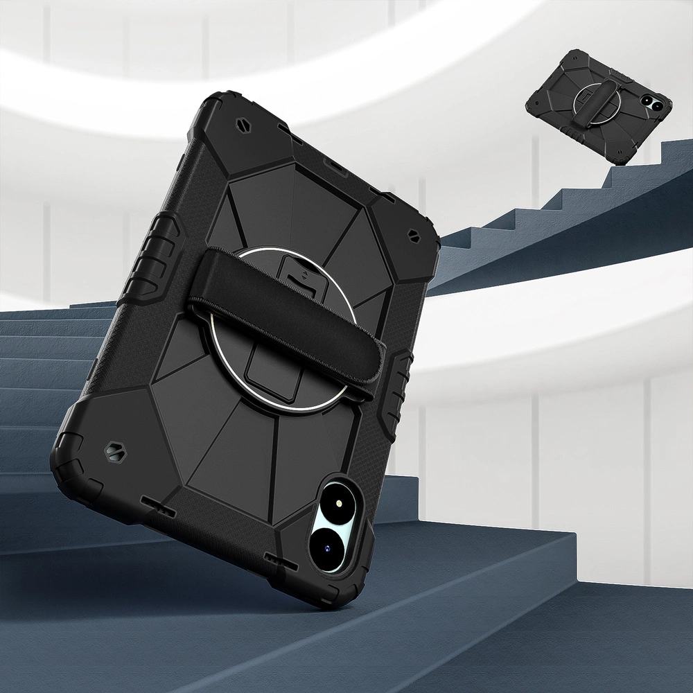 Wytrzymałe etui pancerne Shockproof to niezawodna tarcza dla Twojego tabletu. Dzięki połączeniu materiałów TPU i PC urządzenie jest świetnie zabezpieczone w codziennym użytkowaniu. Konstrukcja zapewnia komfortowy dostęp do wszystkich funkcji, a obrotowa nóżka oraz pasek na dłoń zwiększają wygodę podczas pracy, nauki i rozrywki.