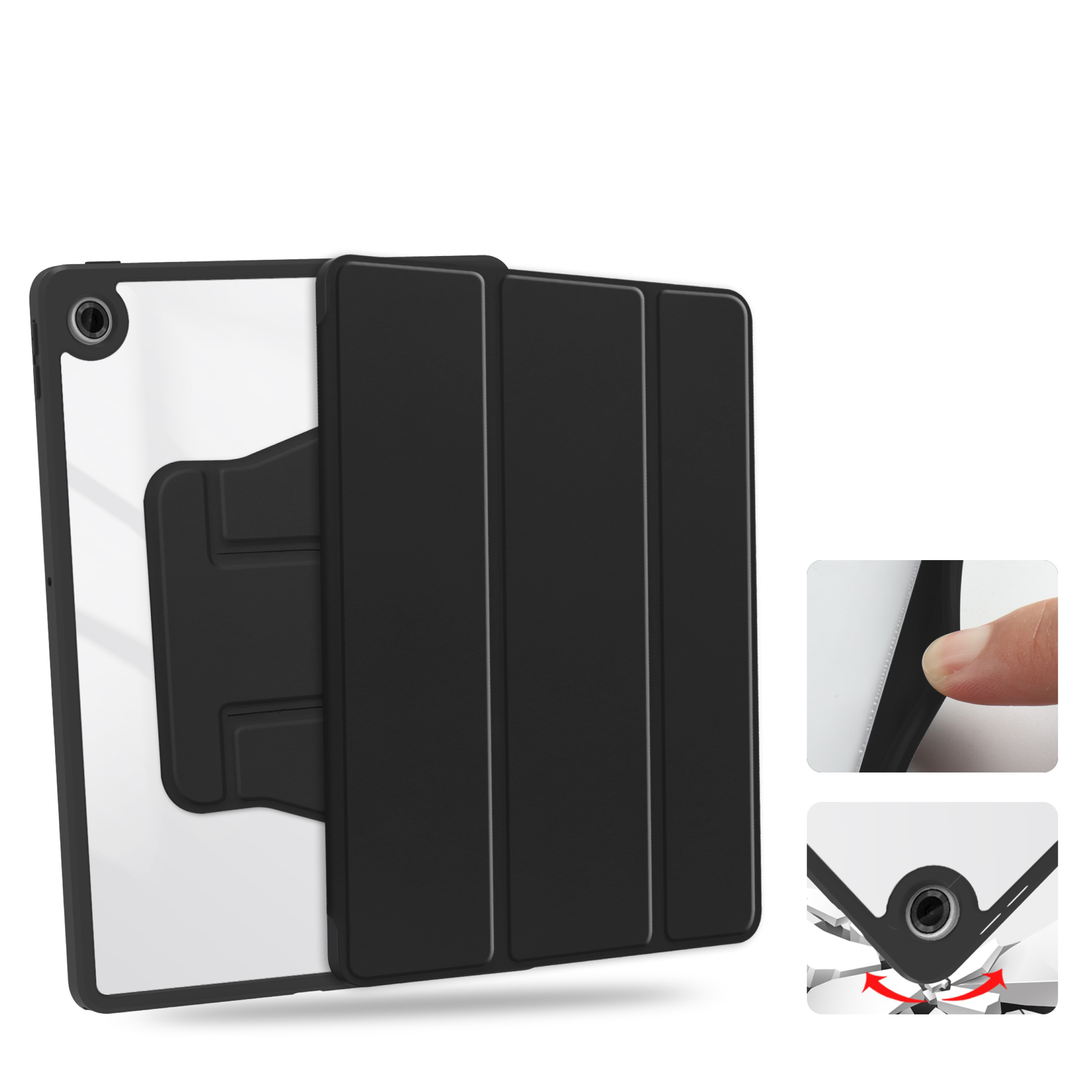 Obrotowa konstrukcja 360° pozwala swobodnie ustawić tablet zarówno w pozycji pionowej, jak i poziomej. To idealne rozwiązanie do oglądania filmów, prowadzenia wideorozmów, pracy biurowej czy prezentacji. Dzięki tej funkcji możesz dopasować kąt widzenia do swoich potrzeb bez konieczności wyjmowania urządzenia z etui.