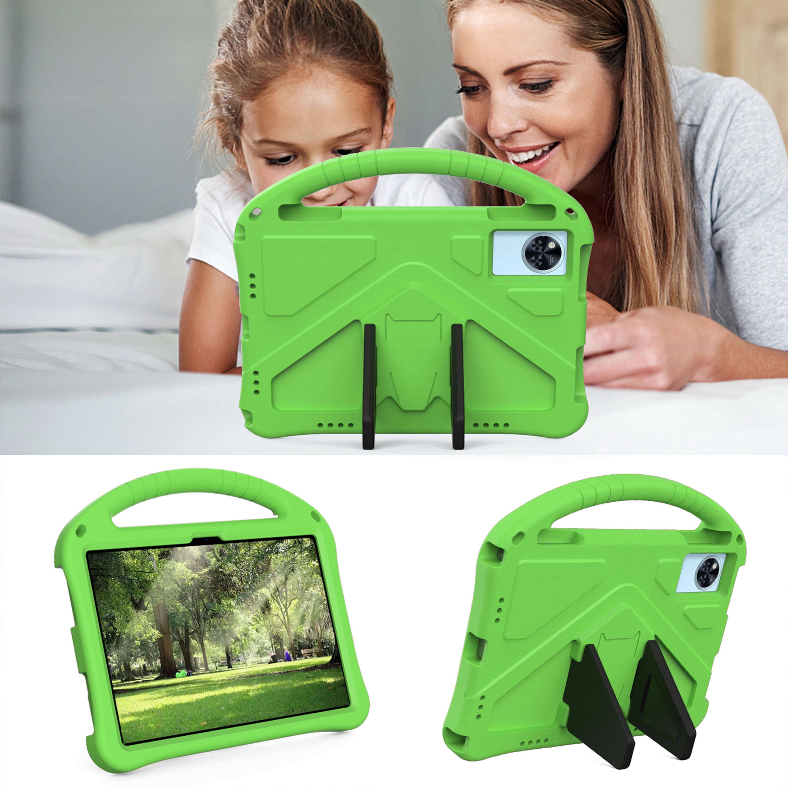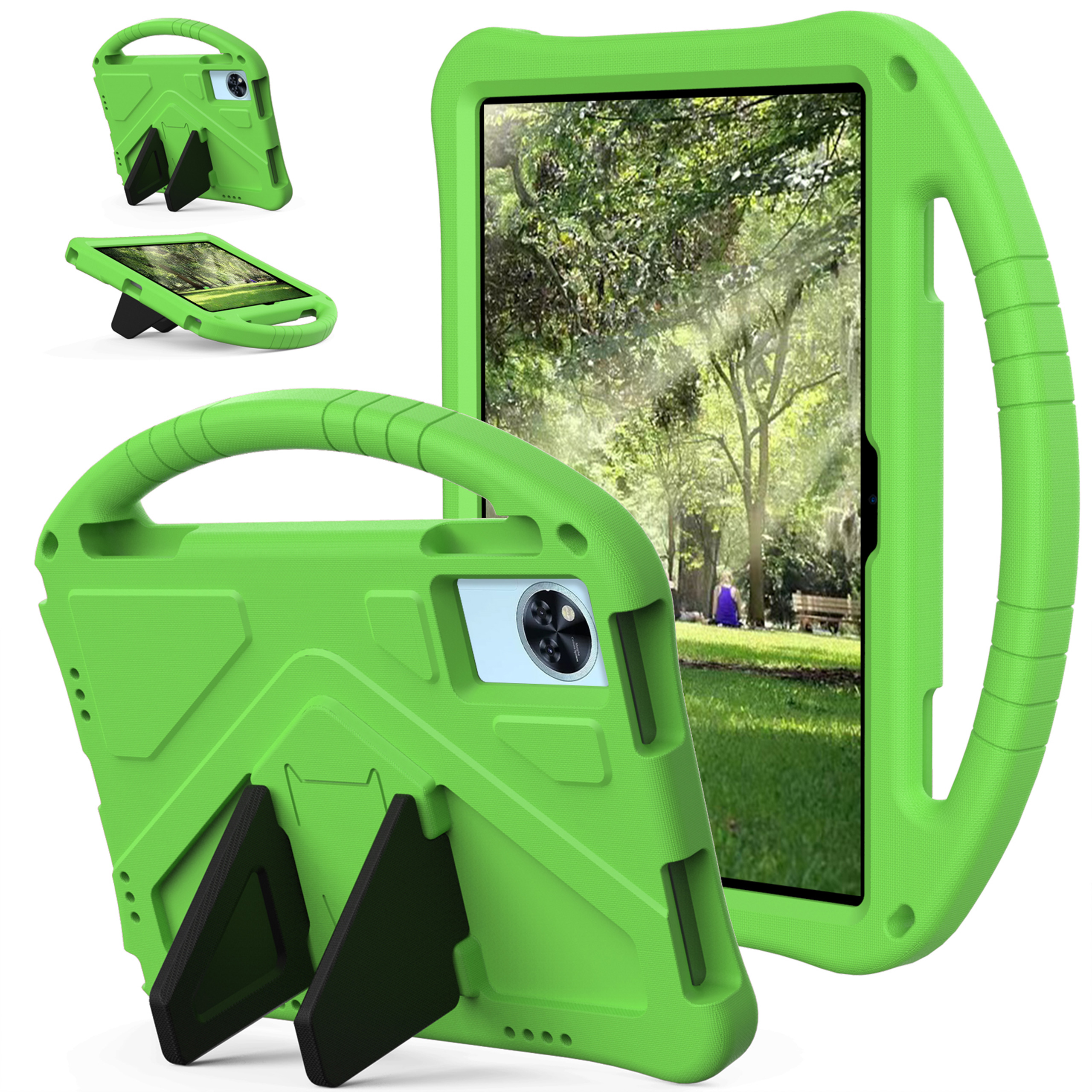 Pancerne etui FunColor wykonane jest z lekkiej, a jednocześnie wyjątkowo wytrzymałej pianki EVA. Materiał ten skutecznie osłania tył oraz boki urządzenia, zapewniając wysoki poziom bezpieczeństwa podczas codziennego użytkowania. Podwyższone ranty chronią ekran nawet wtedy, gdy tablet upadnie ekranem do dołu.