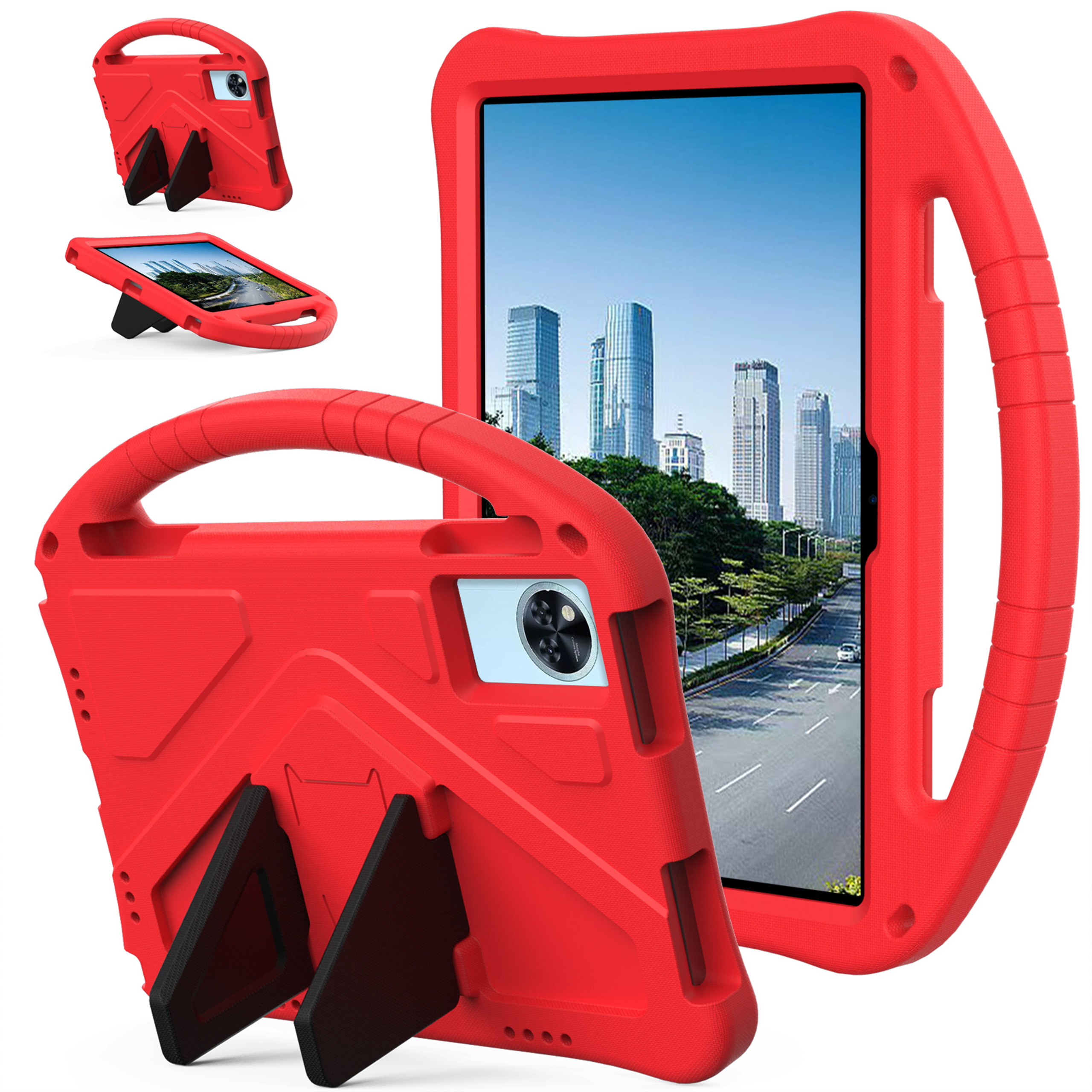 Pancerne etui FunColor wykonane jest z lekkiej, a jednocześnie wyjątkowo wytrzymałej pianki EVA. Materiał ten skutecznie osłania tył oraz boki urządzenia, zapewniając wysoki poziom bezpieczeństwa podczas codziennego użytkowania. Podwyższone ranty chronią ekran nawet wtedy, gdy tablet upadnie ekranem do dołu.