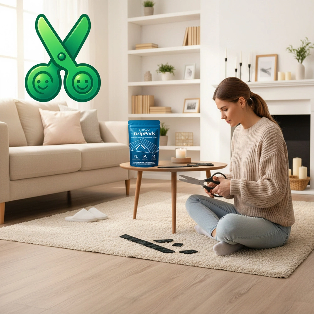 Podkładki można bez wysiłku dociąć zwykłymi nożyczkami, dzięki czemu dopasujesz je do każdego dywanu - niezależnie od jego kształtu, wielkości czy rodzaju narożników. Wystarczy chwila, aby stworzyć elementy idealnie skrojone pod Twoje potrzeby.