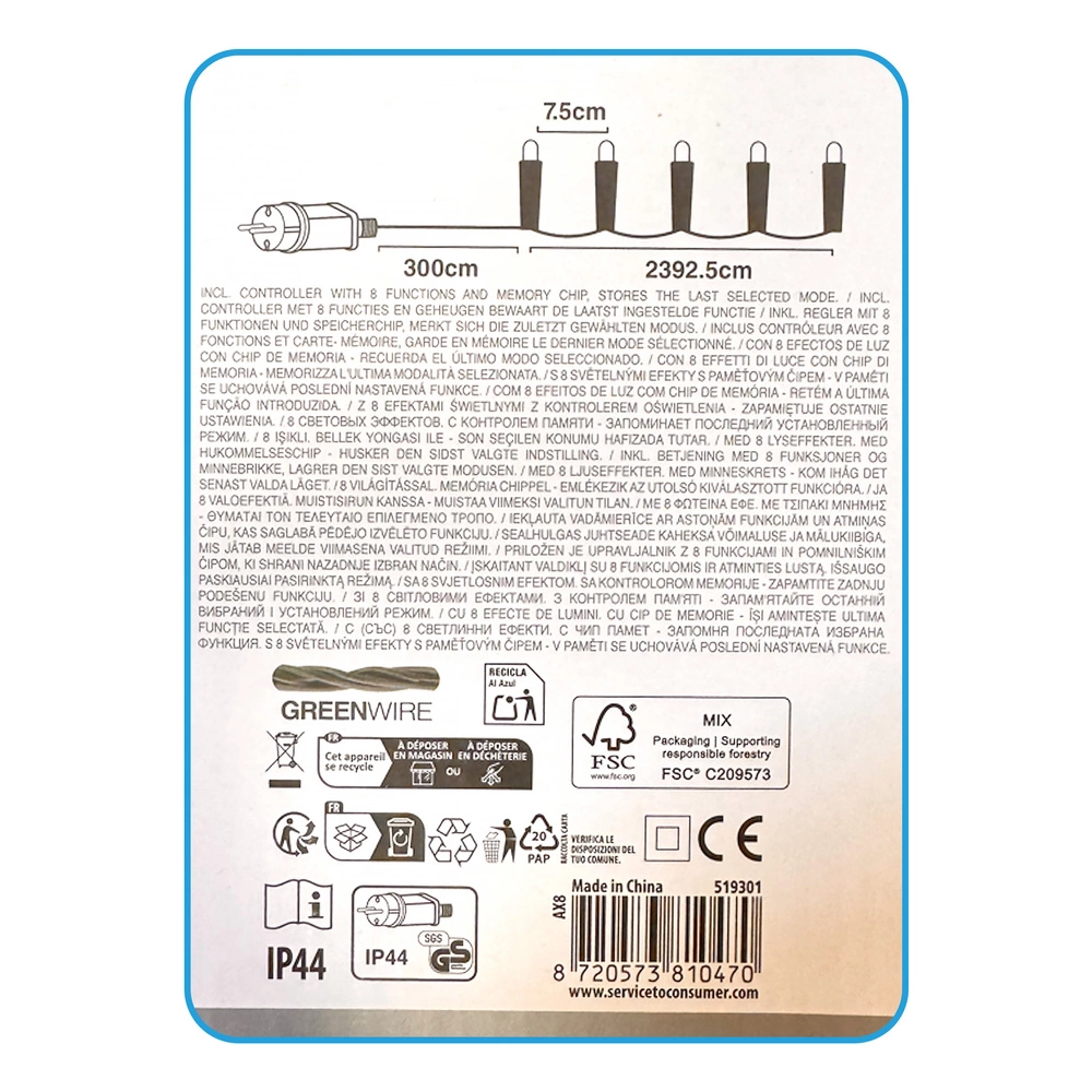 ➡️ Komplet Lampek choinkowych 320 LED 27m (24m + 3m) - barwa ciepła - 3000K