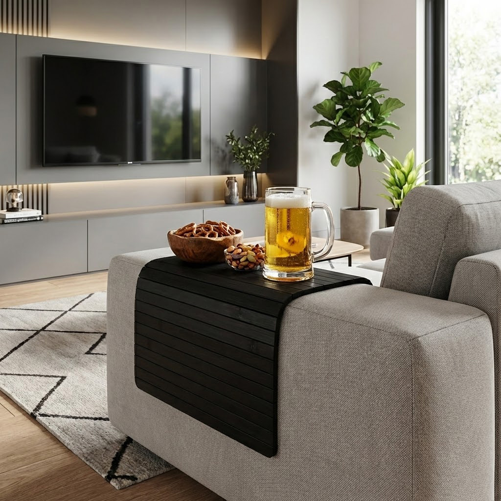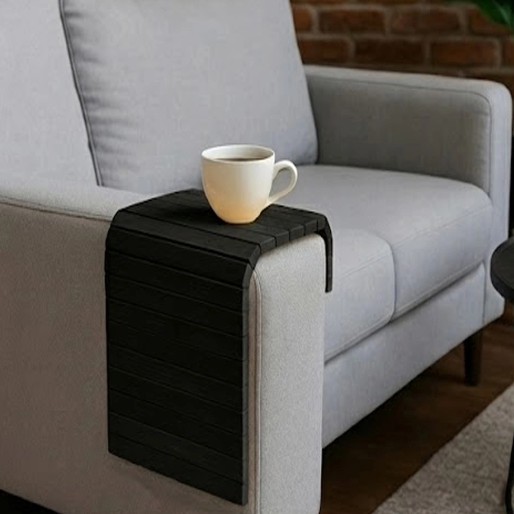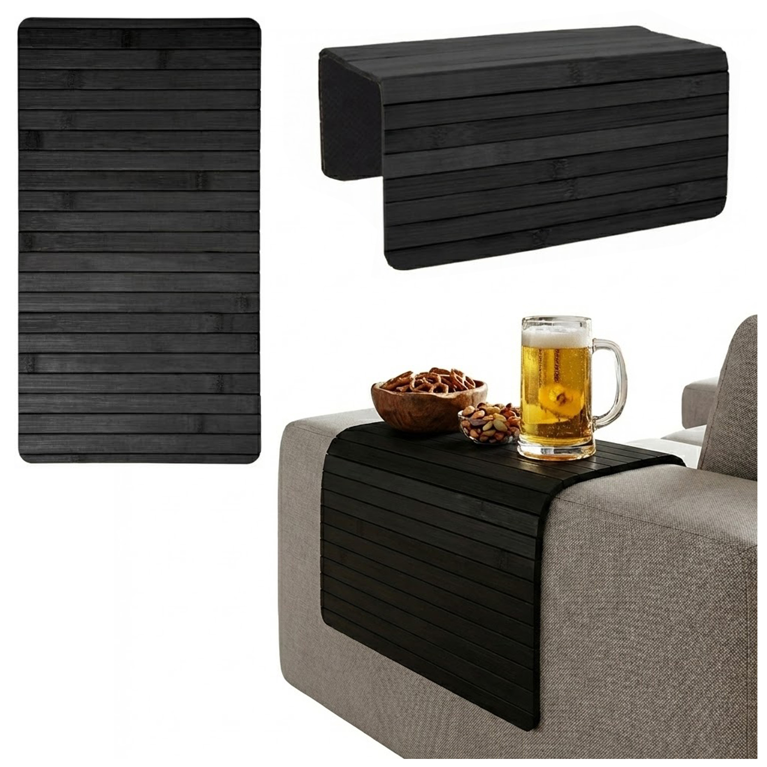 Podłokietnik na sofę kanapę podkładka nakładka elastyczna taca bambusowa (Czarny)