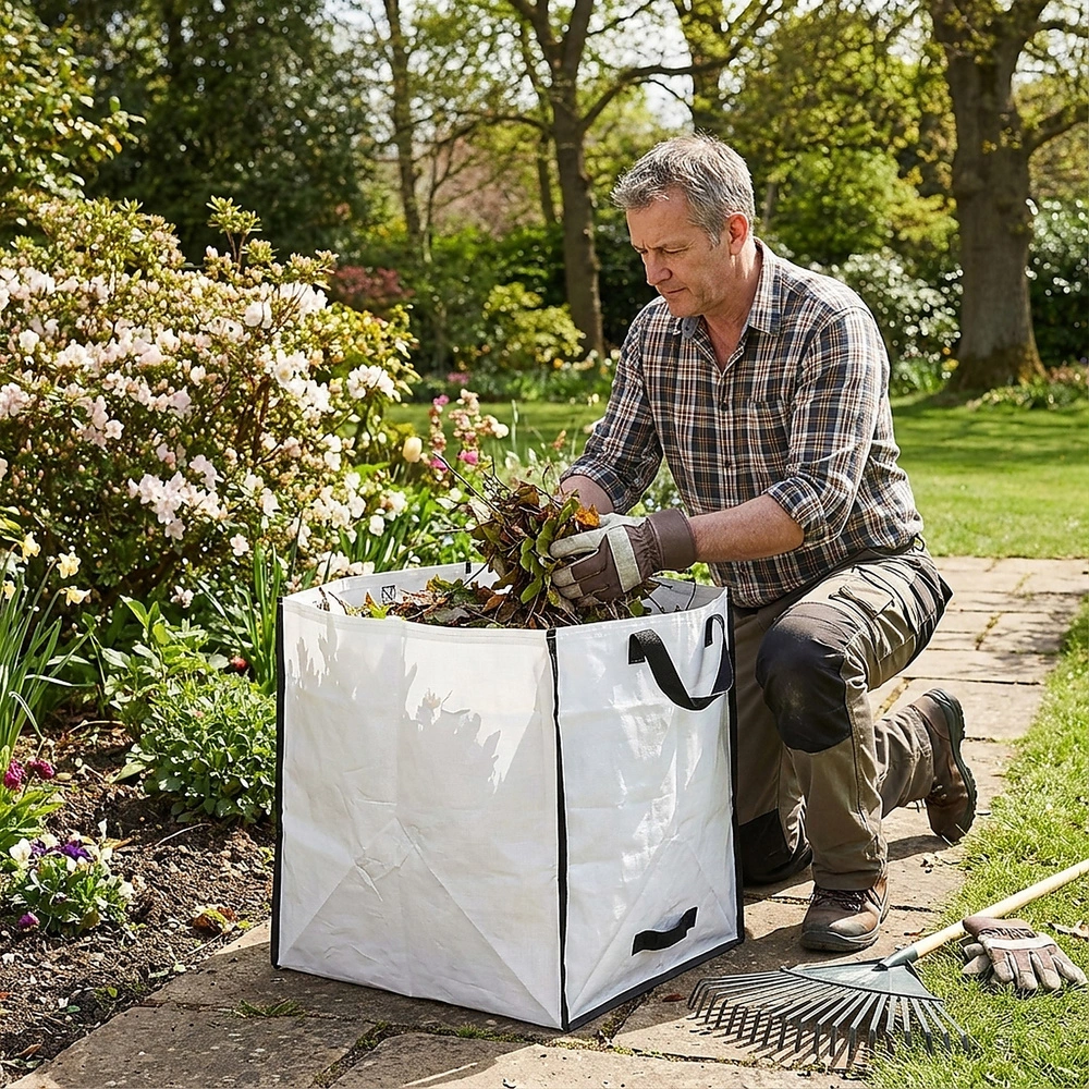Worek na odpady to doskonała pomoc dla każdego ogrodnika. Znacznie przyspiesza prace porządkowe w ogrodzie, na tarasie czy balkonie. Niezastąpiony jesienią przy grabieniu liści oraz wiosną przy przycinaniu krzewów i koszeniu trawnika. Dzięki estetycznemu wykonaniu i uniwersalnemu kształtowi sześcianu, łatwo go ustawić i napełnić.