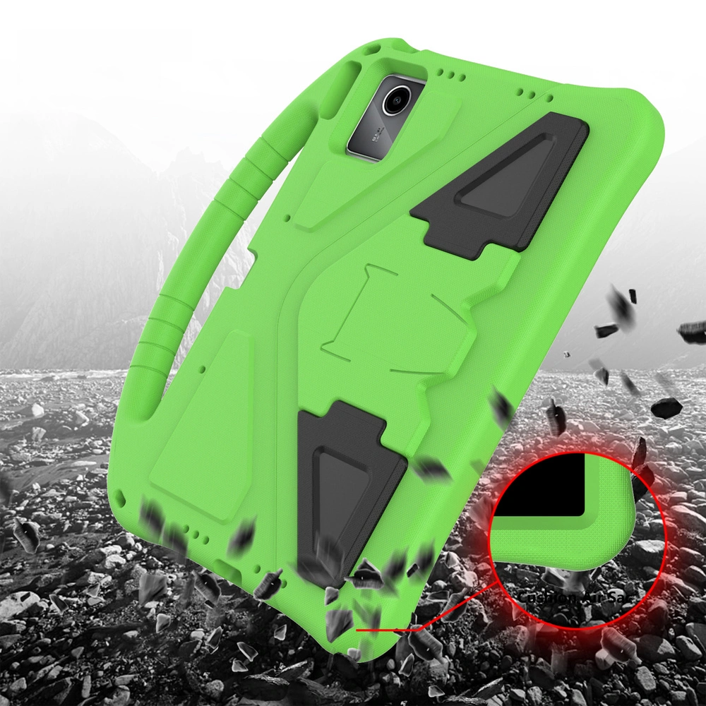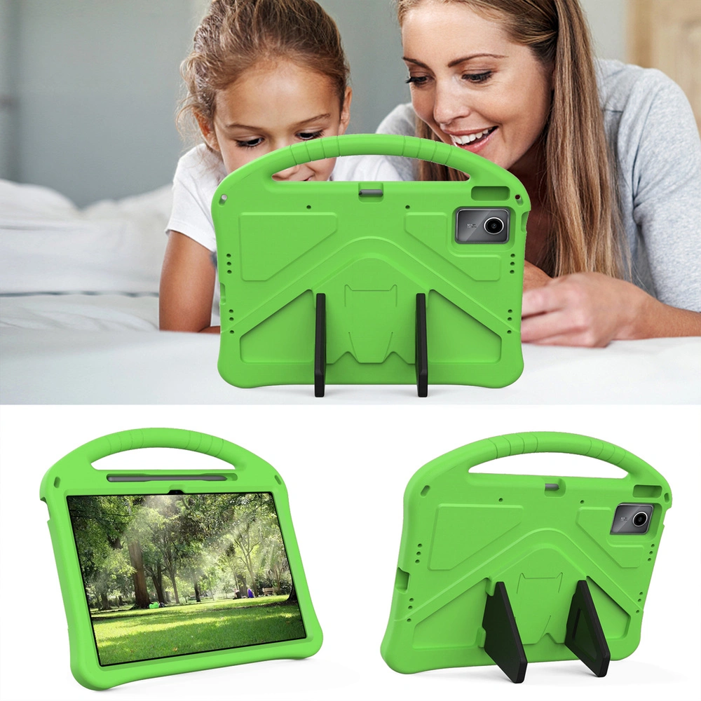 Pancerne etui FunColor wykonane jest z lekkiej, a jednocześnie wyjątkowo wytrzymałej pianki EVA. Materiał ten skutecznie osłania tył oraz boki urządzenia, zapewniając wysoki poziom bezpieczeństwa podczas codziennego użytkowania. Podwyższone ranty chronią ekran nawet wtedy, gdy tablet upadnie ekranem do dołu.
