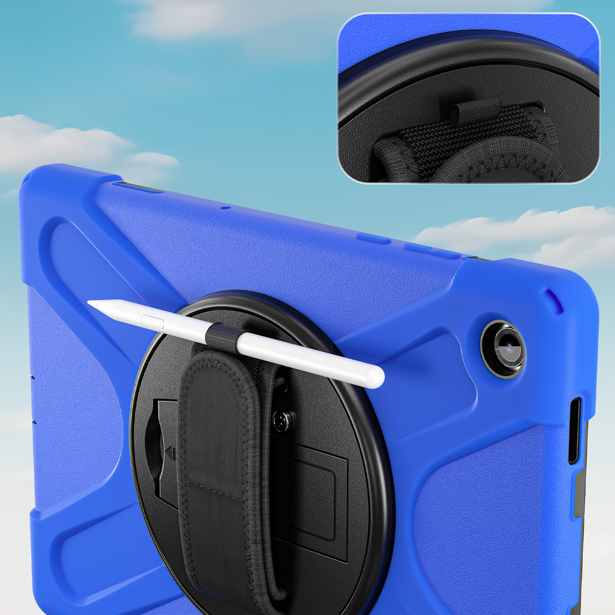Wytrzymałe etui pancerne Shockproof to niezawodna tarcza dla Twojego tabletu. Dzięki połączeniu materiałów TPU i PC urządzenie jest świetnie zabezpieczone w codziennym użytkowaniu. Konstrukcja zapewnia komfortowy dostęp do wszystkich funkcji, a obrotowa nóżka oraz pasek na dłoń zwiększają wygodę podczas pracy, nauki i rozrywki.