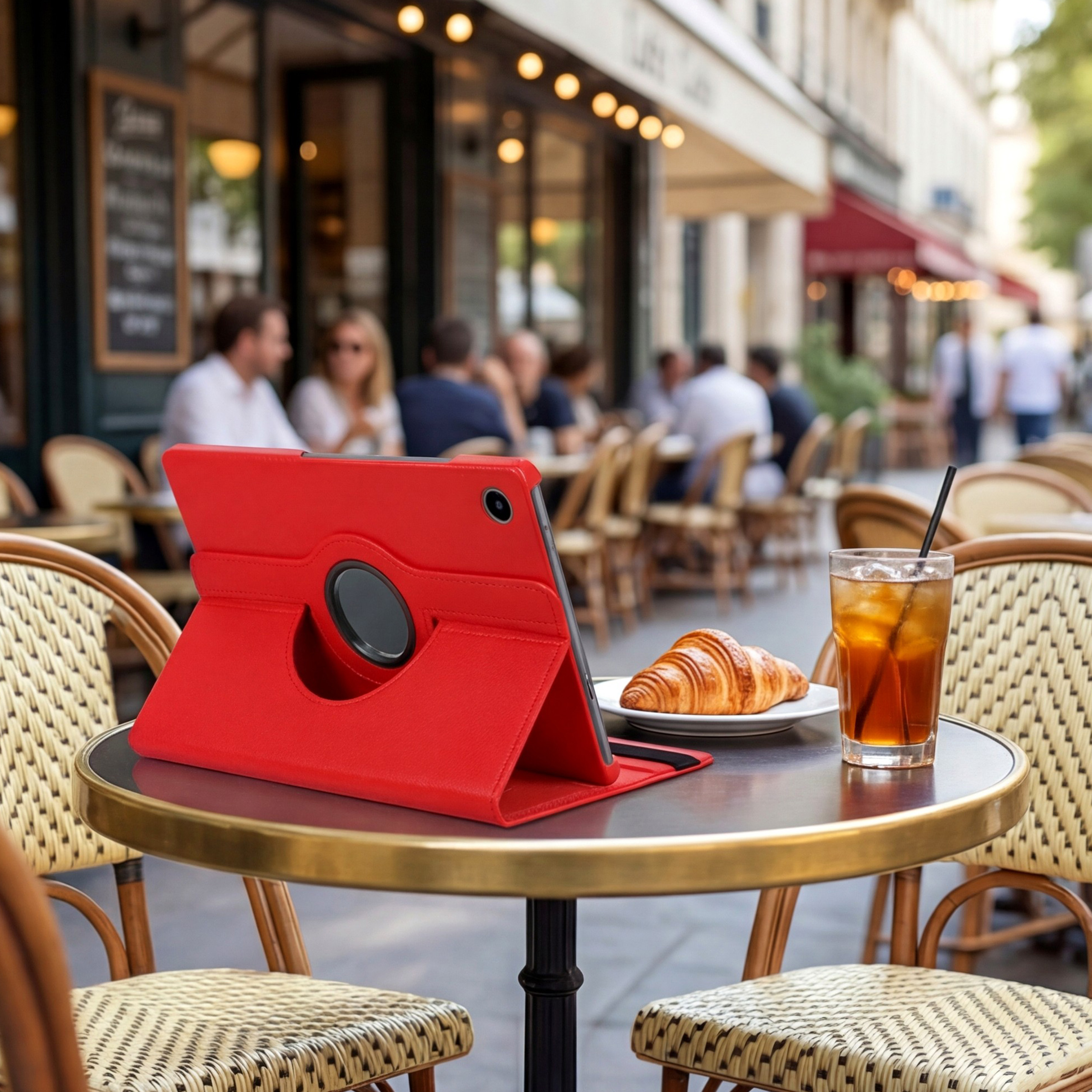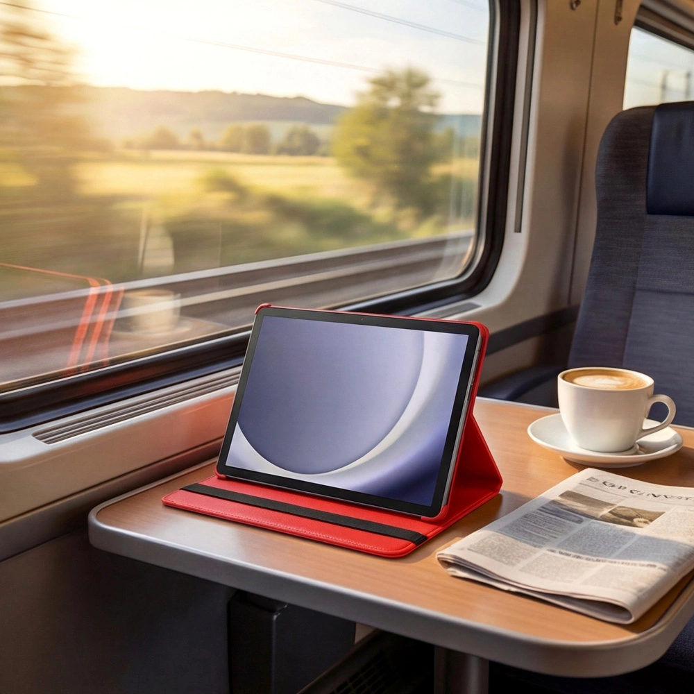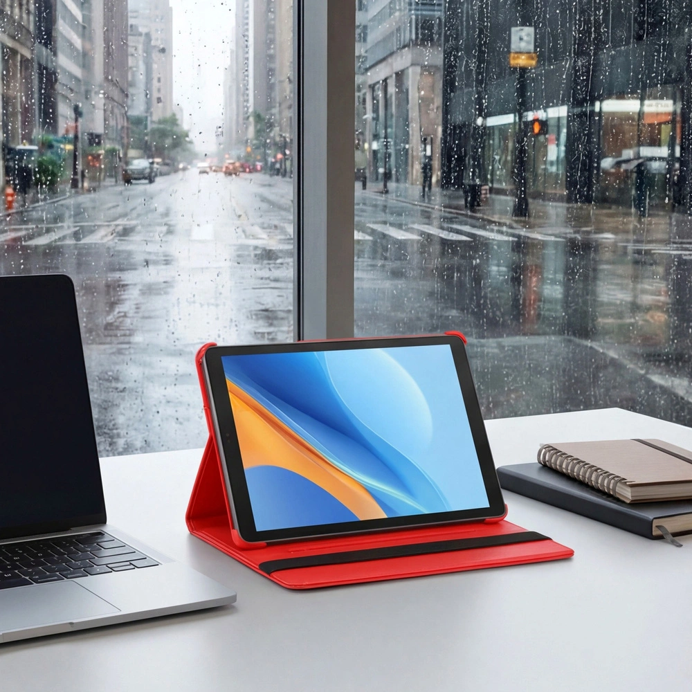 Wytrzymałe etui obrotowe 360° dedykowane do Twojego tabletu, łączy skuteczną ochronę z eleganckim wyglądem. Centralny mechanizm obrotowy pozwala wygodnie zmieniać orientację urządzenia o pełne 360° — idealne do pracy i rozrywki. Funkcja automatycznego wybudzania/usypiania dba o baterię, a przednia klapka zabezpiecza ekran podczas transportu.