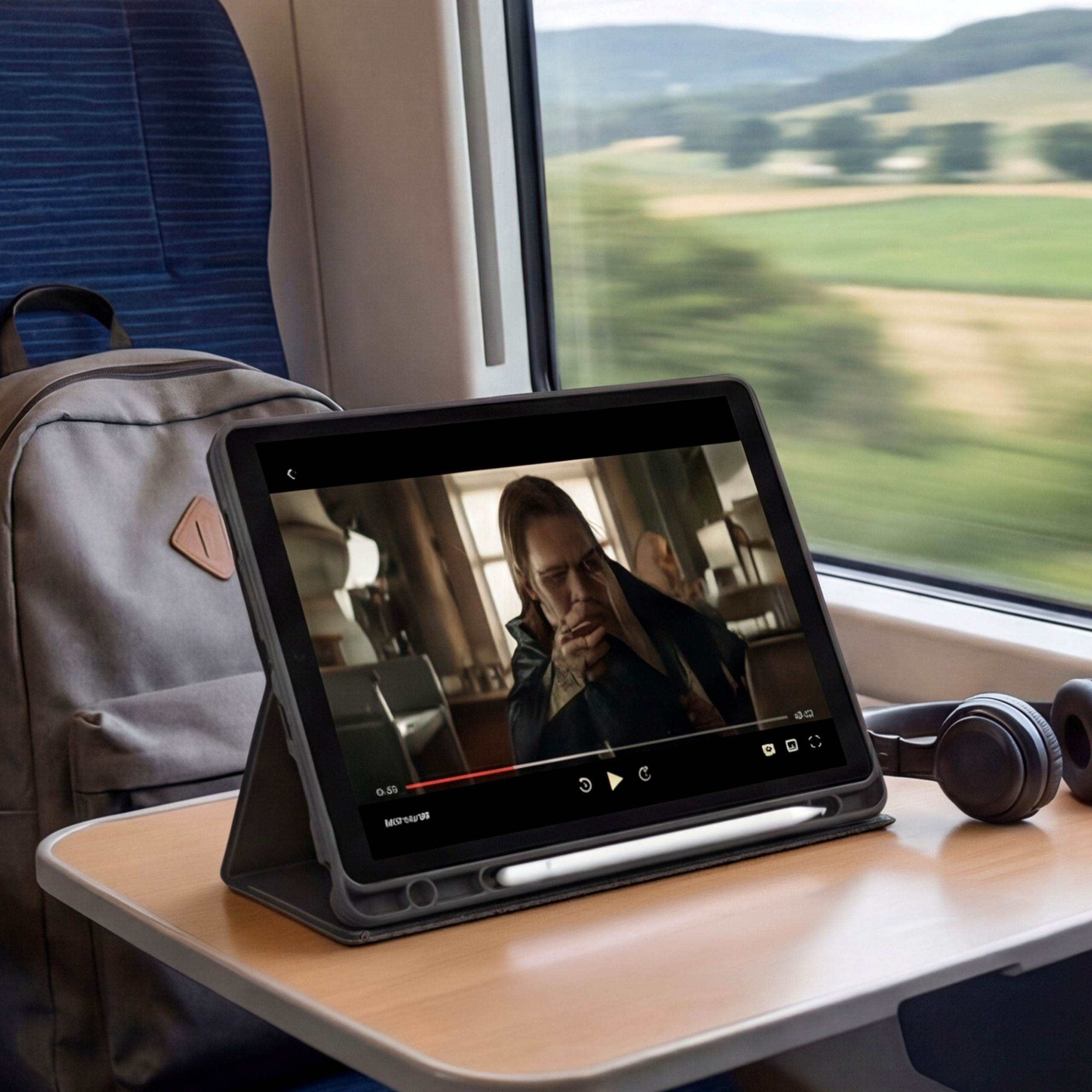 - Funkcja podstawki – możliwość ustawienia tabletu pod kątem 15° lub 60°, idealne do pracy, oglądania filmów czy wideorozmów.