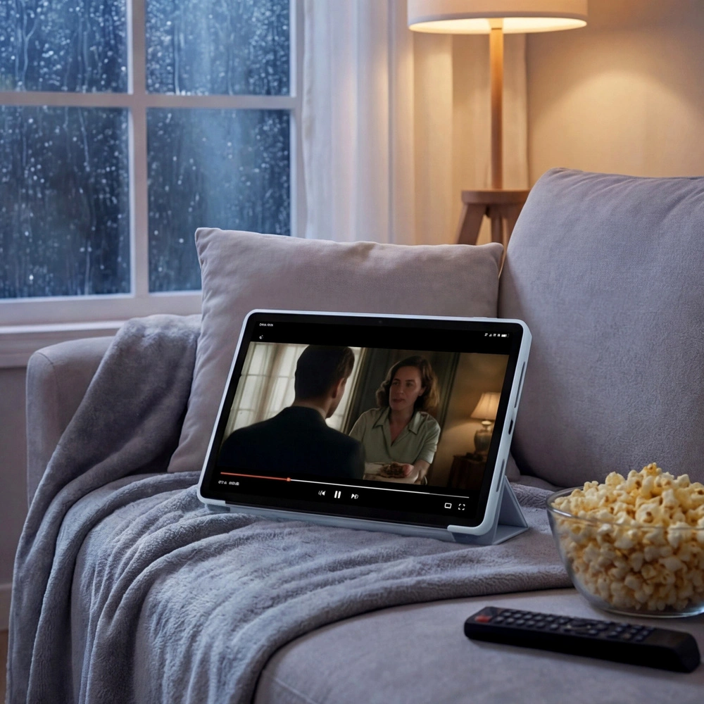 - Funkcja podstawki – możliwość ustawienia tabletu pod kątem 15° lub 60°, idealne do pracy, oglądania filmów czy wideorozmów.