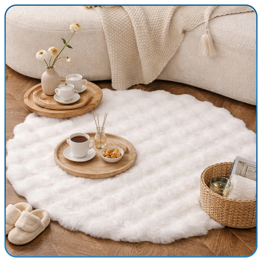 Dywan okrągły Rabbit Bubble 120 cm - miękki puszysty dywan do salonu i sypialni - biały